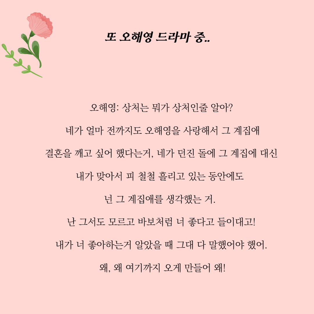 오해영: 상처는 뭐가 상처인줄 알아? 네가 얼마 전까지도 오해영을 사랑해서 그 계집애