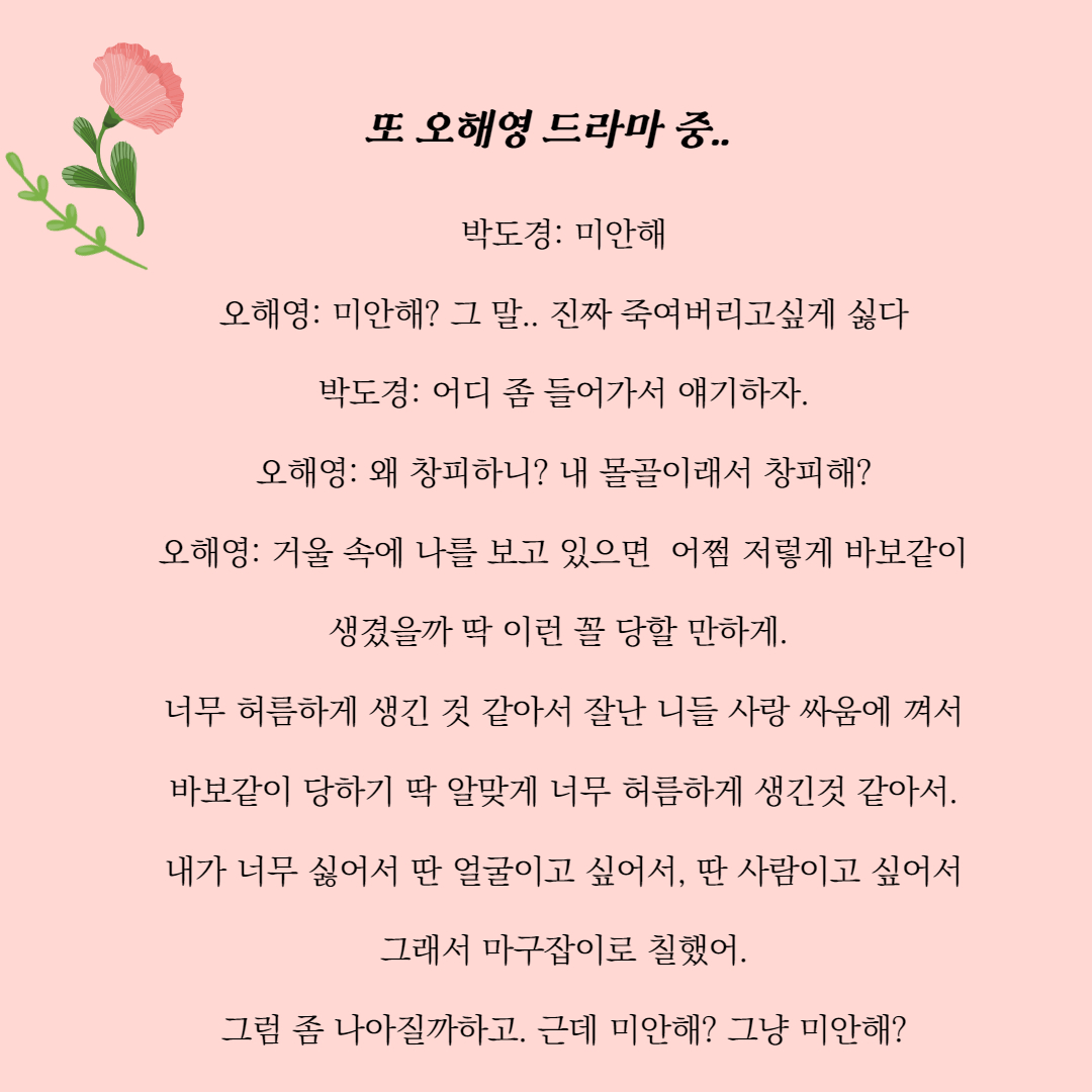 남1여1 /드라마 대본 /또오해영 장면중 한 부분입니다.